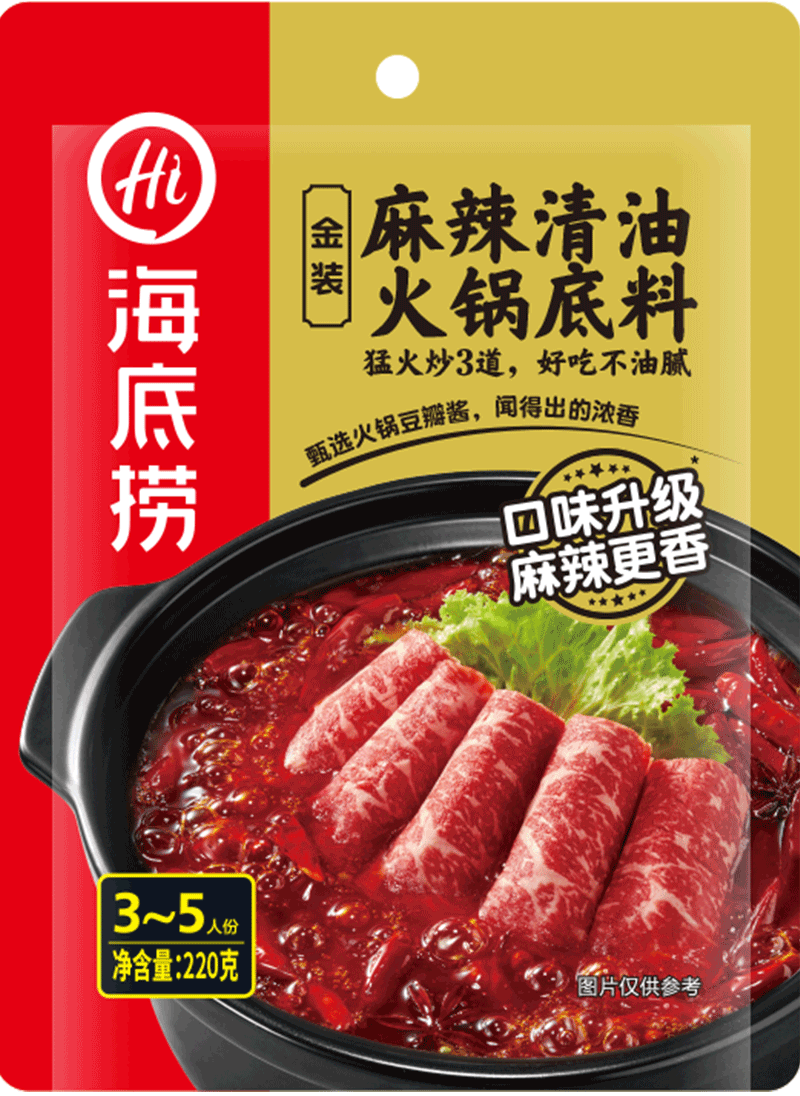 我們提供從火鍋底料、火鍋蘸料到中式復合調味品等全面產品種類,并專注于中高端市場。我們憑借「海底撈」品牌銷售我們各產品線的產品。
